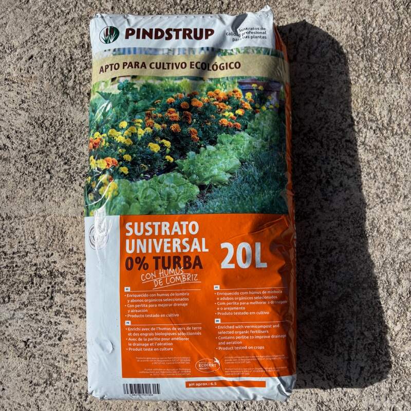 Con las proporciones adecuadas de corteza de pino correctamente compostada y cribada, fibra de madera, humus de lombriz y perlita, el SUSTRATO UNIVERSAL 0% TURBA de PINDSTRUP tiene una estructura óptima, una muy buena capacidad de drenaje y buena retención de agua.