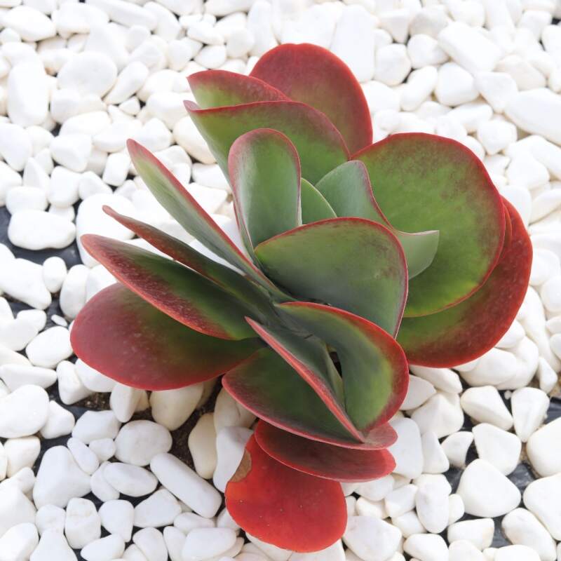 Una extradordinaria suculenta con sus vistosas hojas grandes y carnosas de color verde claro con bordes de tono rojizo!.