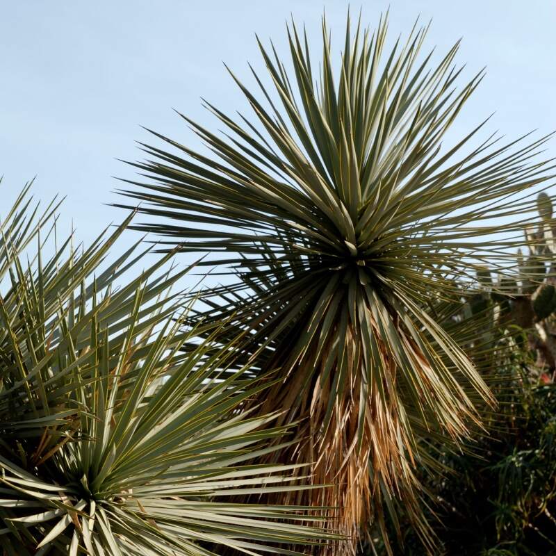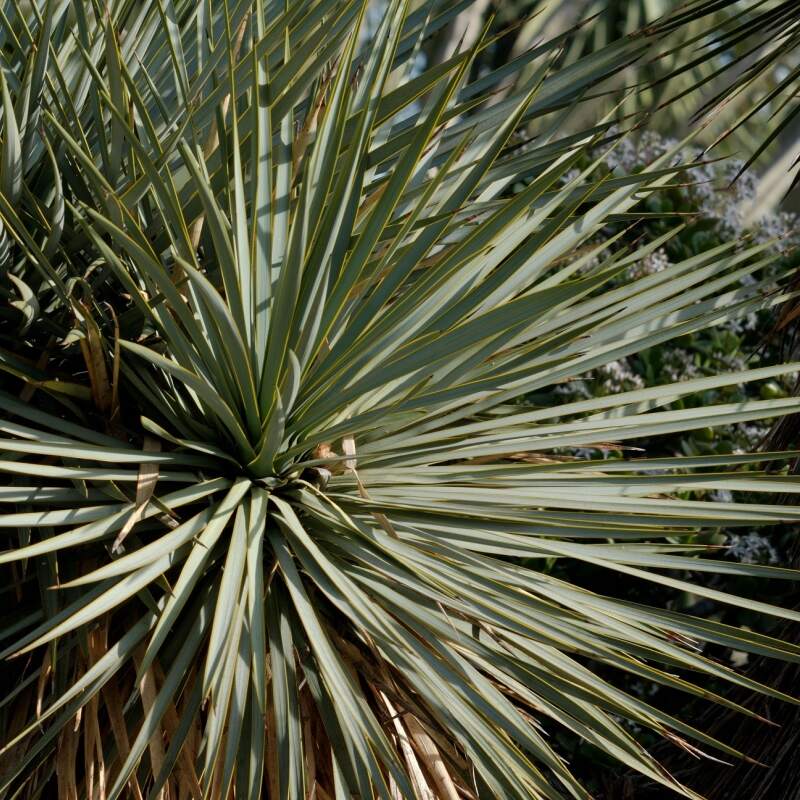 Plante succulente arborescente d'une hauteur comprise entre 1 et 3 mètres, parfois plus avec plusieurs troncs. Tronc mince, ramifié avec le temps. Feuilles rigides, bleu-vert, étroites et à pointe effilée. Fleurs blanches ou crème, en grandes panicules qui apparaissent au printemps ou au début de l'été. Croissance lente.